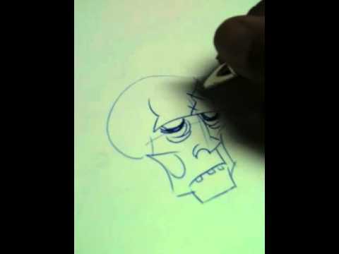 Here I am drawing a quick zombie head from scratch, with a nice blue pen.